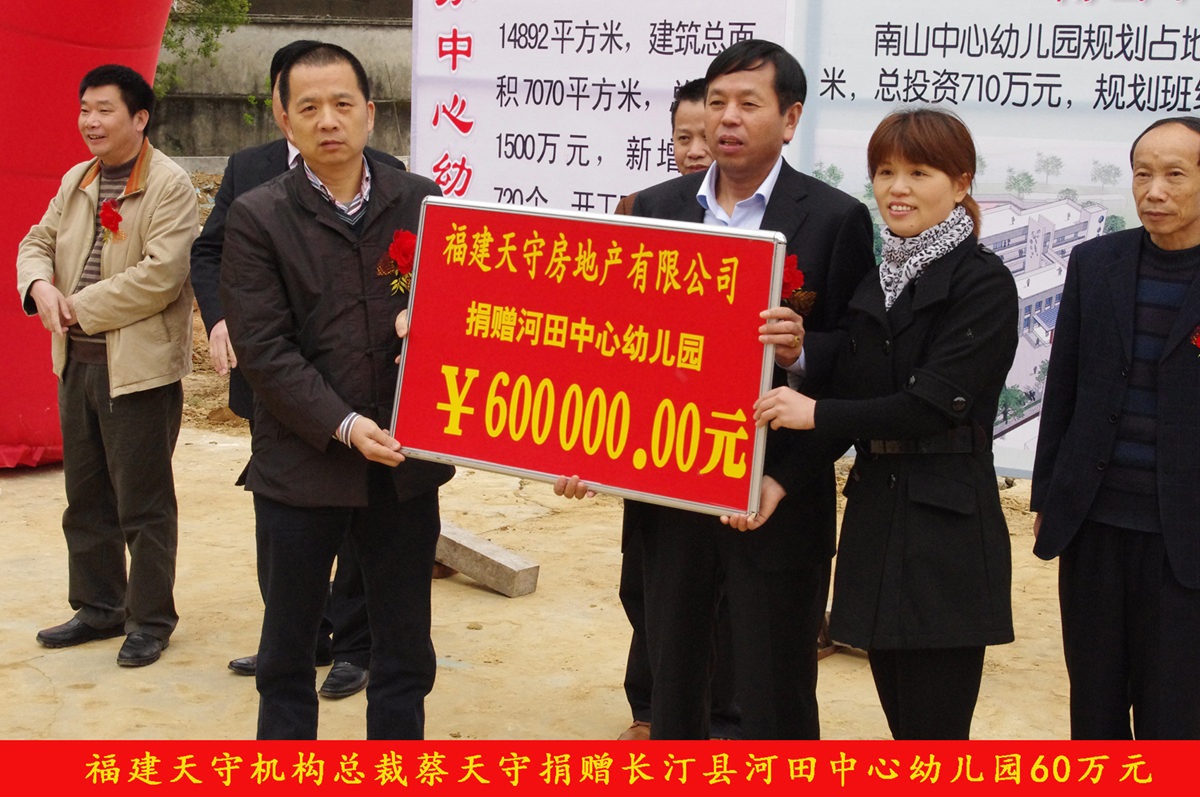 捐贈(zèng)60萬(wàn)元支持長(zhǎng)汀縣河田中心幼兒園的建設(shè)。