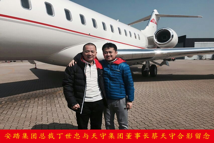 安踏集團(tuán)總裁丁世忠與天守集團(tuán)董事長蔡天守合影留念