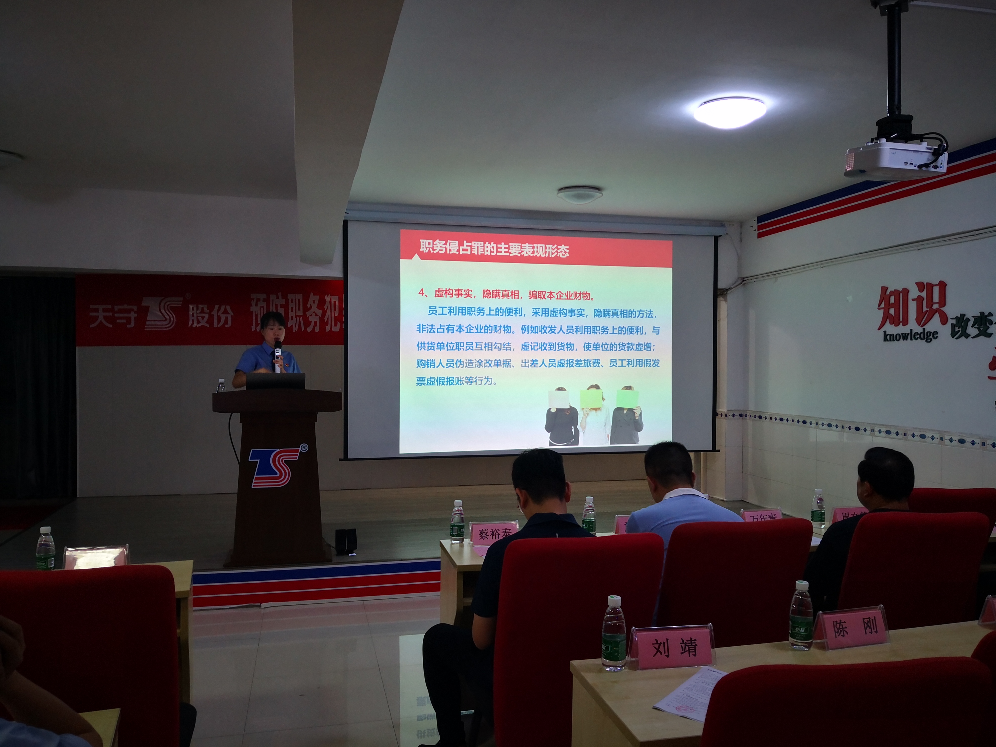 為進(jìn)一步加強(qiáng)公司廉潔文化建設(shè),提高公司員工廉潔自律意識(shí),切實(shí)做好反腐倡廉工作,7月29日晚上,天守股份特邀漳平市人民檢察院黃微科長(zhǎng)到公司開展預(yù)防職務(wù)犯罪法制講座,天守股份全體中高層、關(guān)鍵部門及崗位共百余名員工到場(chǎng)學(xué)習(xí)。